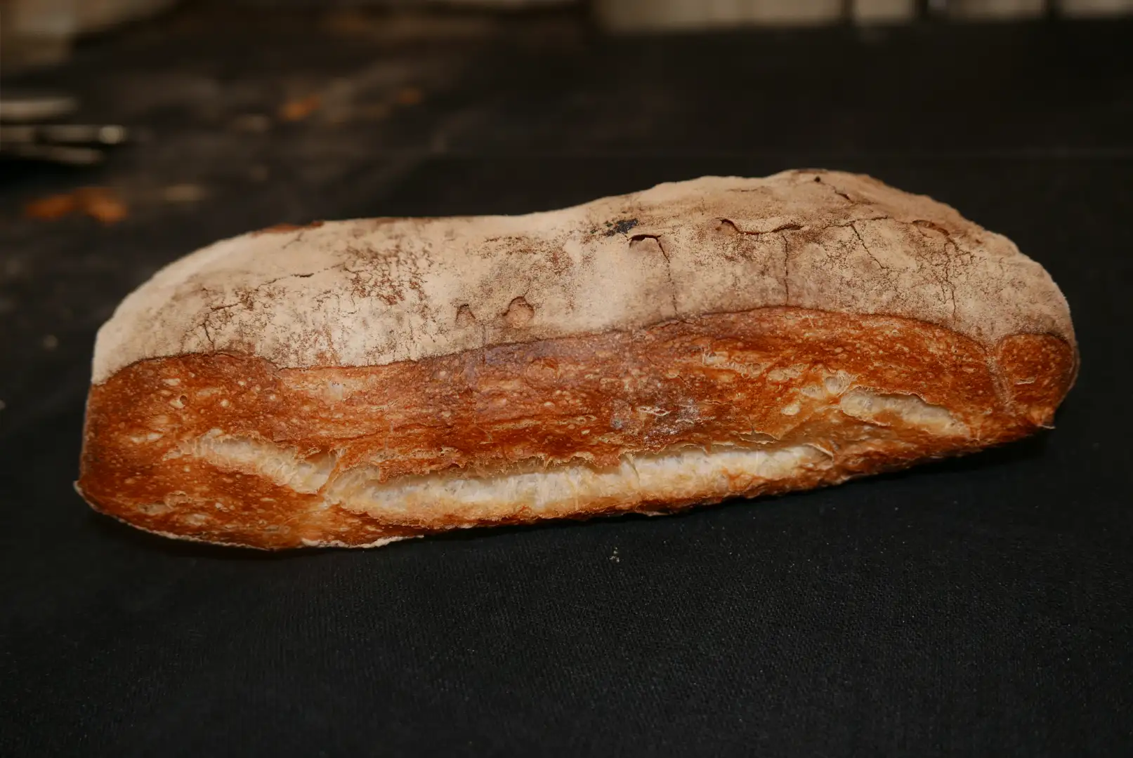 És un pa clàssic, rústic com el d’abans, elaborat amb massa mare i seguint les tècniques tradicionals de llargues fermentacions en caixons de fusta, on la massa reposa entre teles de cotó, per aconseguir un bon sabor i aroma del pa. Cuit en forn de sola, obtenim una textura esponjosa de molles humides i alveolades i crostes cruixents. Es pot servir sencer o llescat, i és perfecte per fer pa amb tomàquet o torrades.