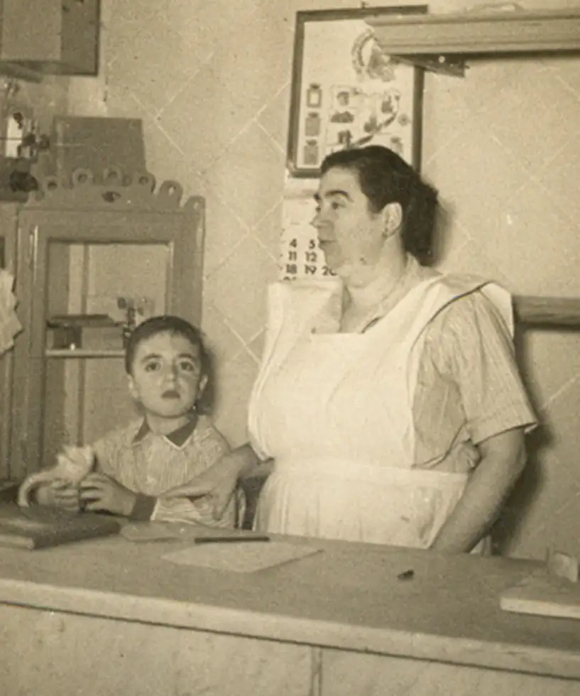 L’emblemàtica imatge de la iaia Maria darrera el taulell amb el seu mític davantal blanc de blonda i el meu pare entre les cames. El viu record de la torna quan oferia a les criatures un tros de coca de forner tallada a cop de guillotina o un llonguet que mai no arribaven a casa. I amb el més sincer dels somriures, es guanyava el caliu de la gent del poble.